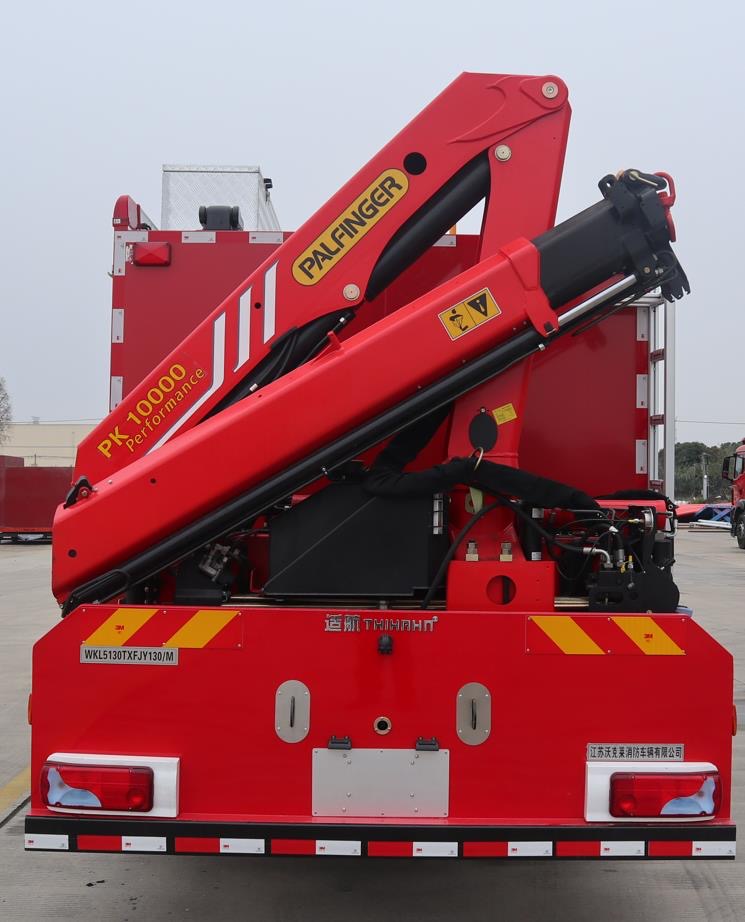 3.3 | 車后部設(shè)有登頂爬梯,能使消防人員迅速登上車頂,梯子和踏板站立面均做防滑處理;車頂設(shè)有防護(hù)欄板,車頂鋪設(shè)滑板以確保人員在車頂安全行走。 |
