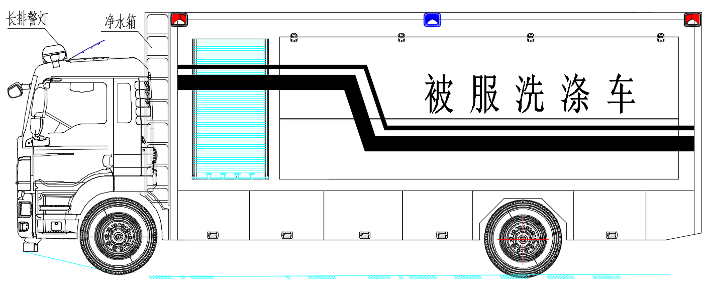 該器材車,集洗衣、烘干、掛燙等多功能于一體。該型裝備操作使用方便,機(jī)動性能好,自動化程度高,滿足一小時能洗滌60kg干重被服;40~55分鐘烘干60kg干重的被服需求。該型被服洗滌車由方艙艙體、洗衣系統(tǒng)、干衣系統(tǒng)、熱源系統(tǒng)、給排水系統(tǒng)、車載發(fā)電系統(tǒng)、電氣控制系統(tǒng)等構(gòu)成。