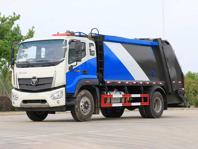 壓縮式垃圾車:采用機電液一體化技術,借助機、電、液聯(lián)合自動控制系統(tǒng),通過車廂、填裝器和推鏟等專用裝置,實現(xiàn)垃圾倒入、壓碎或壓扁、強力裝填,把垃圾擠入車廂并壓實和推卸。其主要特點是垃圾收集方式簡便、高效、具有自動反復壓縮以及蠕動壓縮功能,壓縮比高,裝載質量大,作業(yè)自動化,動力性、環(huán)保性好,整車利用效率高。